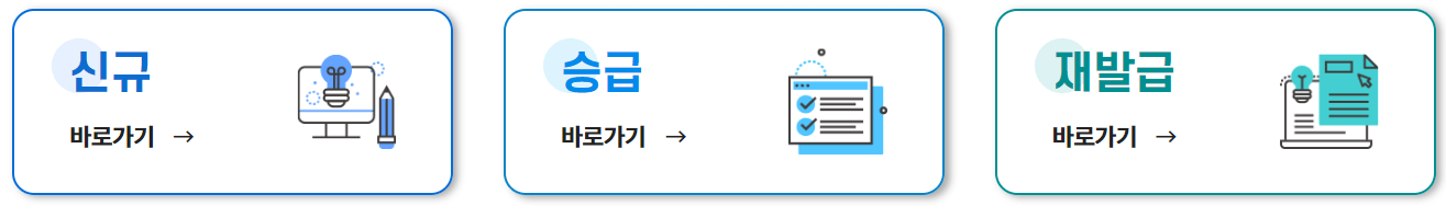 일단 홈페이지에서 회원가입 후 상단에 온라인자격증 신청하러 가기를 클릭하고 재발급을 선택한다.