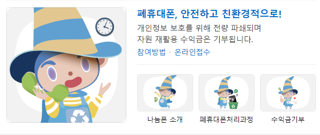 폐휴대폰을 안전하게 처리하고 자원 재활용을 통해 기부도 가능한 사이트이다.